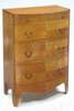 the top with reeded edge and shallow frieze drawer above three long drawers with laurel cast gilt metal handles, on shaped apron and bracket feet, the whole decorated with boxwood and chequered lines