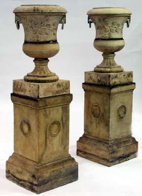 A pair of 19th century Hurlford terracotta garden urns and stands