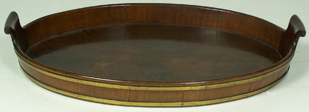 A George III mahogany and coopered oval tray