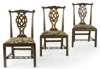 A set of three George III mahogany bell carved dining chairs In the manner of Alexander Peter