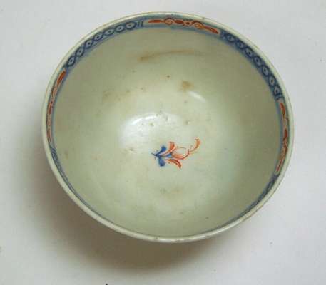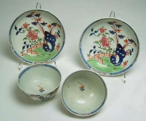 A pair of 19th century Lowestoft tea bowls and saucers, 1780-85