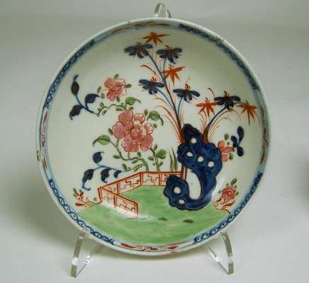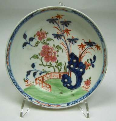 polychrome painted in the Hollow Rock pattern, with rockwork, peonies, bamboo and a fence (4)