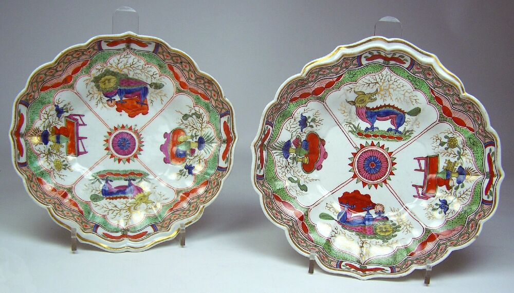 of oval scalloped form, decorated in the dragons in compartments (Bishop Sumner) pattern, unmarked (2)