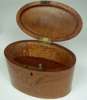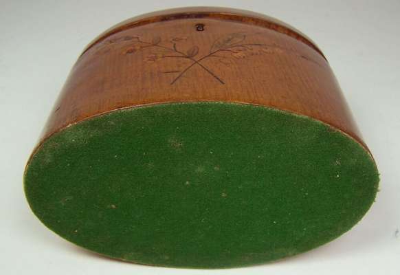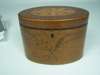 of oval straight sided form, the lid with an oval foliate rosette surrounded by beading, the front with crossed flowers