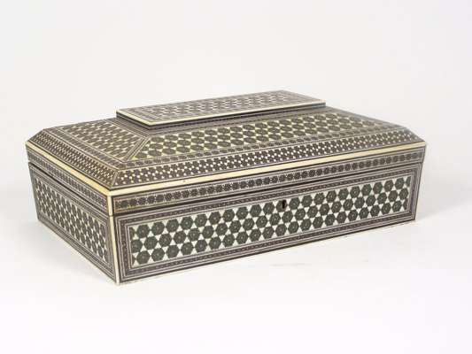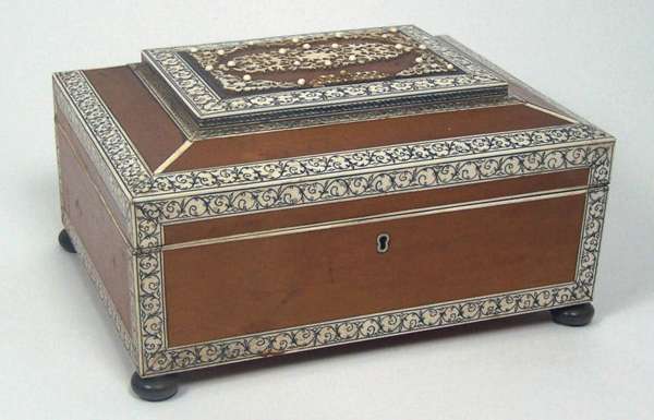 A 19th century Anglo-Indian mosaic ivory and sandalwood work box