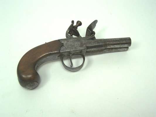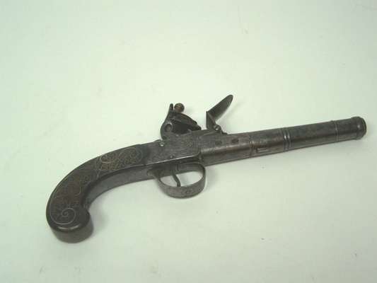 A mid 18th century flintlock boxlock, turnoff cannon barrelled pocket pistol