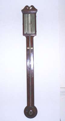 A George III mahogany and chequer banded stick barometer By Ambrosoni of Edinburgh