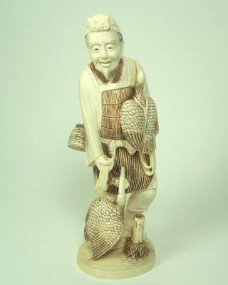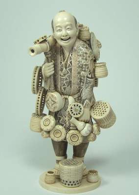A large Japanese ivory figure of a basket seller, Meiji or Taisho period