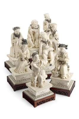 A set of six 19th century Capo di Monte blanc de chine figure groups