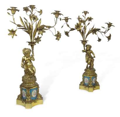 A pair of 19th century bronze and ormolu candelabra In the Louis XV style