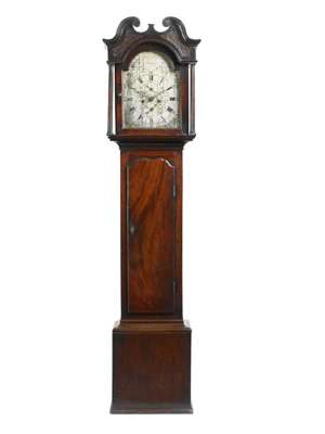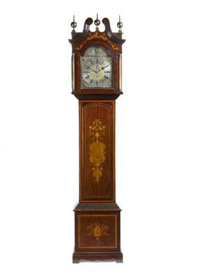 A Edwardian mahogany and satinwood crossbanded chiming longcase clock