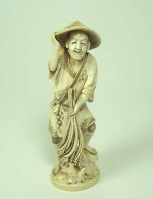 A Japanese ivory figure of a peasant, Meiji or Taisho period