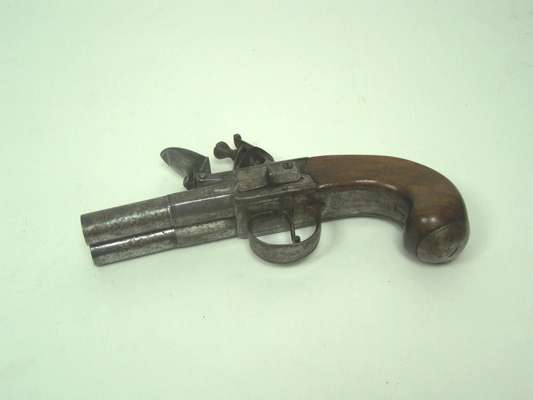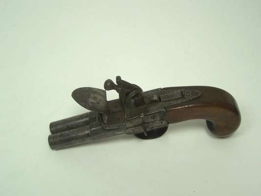 A late 18th century flintlock boxlock turn-off side-by-side double barrelled pocket pistol