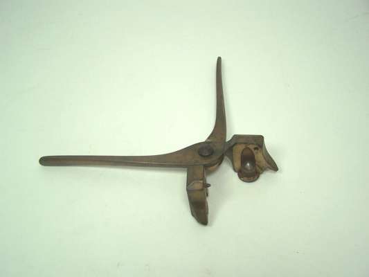 signed ' DOWBIGGIN' , with sliding pan cover and sliding safety with replacement walnut slab sided butt, with proof marks and viewing marks, 20cm long; a rifle bullet mould and another (3)