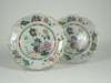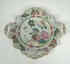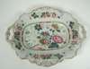 each piece with scalloped edge and moulded flowers, polychrome decorated with flowers and a vase in the Chinese style, comprising two shaped rectangular scroll-handled comports, 29.5cm wide, four shaped circular scroll-handled comports, 25.5cm wide, and twelve dessert plates (18)