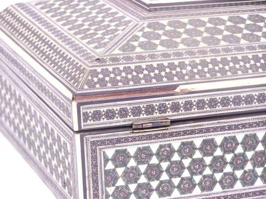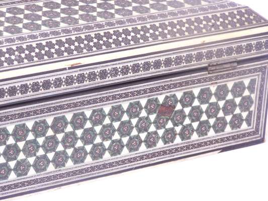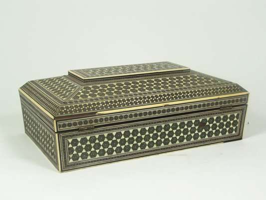 A 19th century Anglo-Indian mosaic ivory and sandalwood work box