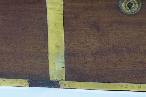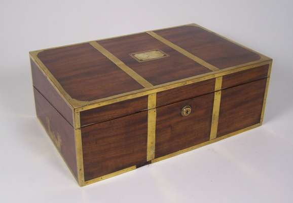 An early 19th century mahogany and brass bound lap desk