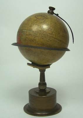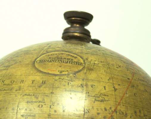 PATENT 19460 RICHARD'S CHRONOSPHERE, made up of twelve lithographed gores, the chamfered horizon engraved with Roman numerals, raised on a fluted column, and stepped circular base with an eight-day lever escapement movement, stamped MADE IN FRANCE 242
