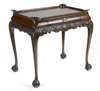 the outscrolling galleried top above an ogee frieze with central drawer above a shell and leaf carved apron on cabriole legs ending in claw and ball feet