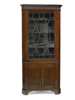 the projecting dentil cornice with fluted frieze above a twenty-one pane astragal glazed door enclosing shaped shelves and later mirrored interior, the lower part with a pair of fielded panel cupboard doors, on bracket feet