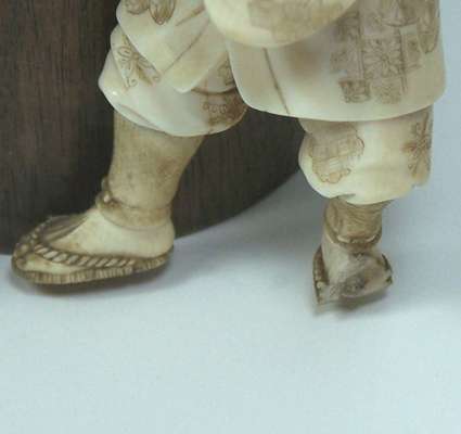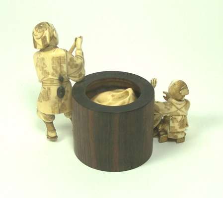 A Japanese ivory and wood okimono of laundry workers, Meiji period