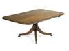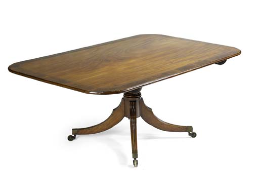 the rounded rectangular top with subsidiary box and ebony lines and tilt action mechanism retained by a brass stay, above a baluster turned column and downswept reeded quadruped base ending in brass box castors