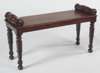 the rectangular seat with moulded edge flanked by two turned and rosette carved bosses, on turned and lappet carved tapering legs with spherical feet
