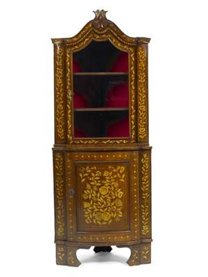 A 19th century Dutch walnut and floral marquetry corner cabinet