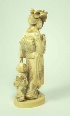 A large Japanese ivory figure of a bejin and child, Meiji or Taisho period