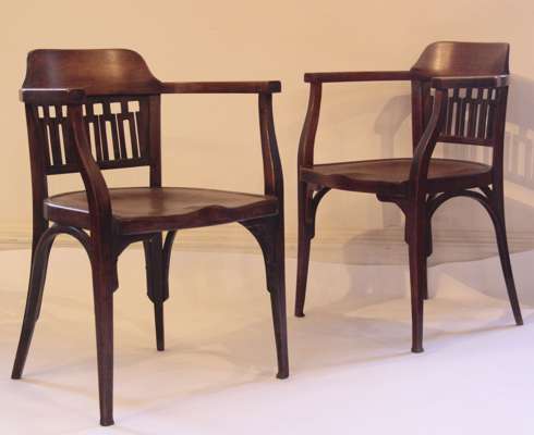 A pair of Secessionist style bentwood chairs, circa 1900 Stamped JJ Kohn