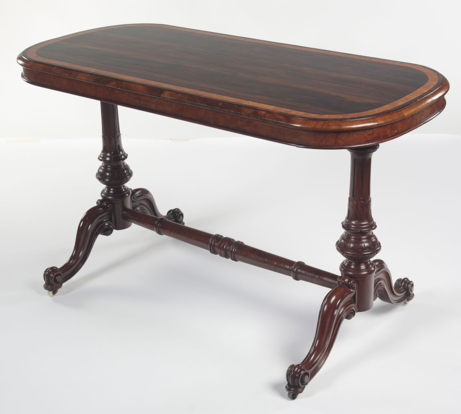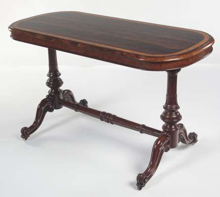 A mid Victorian rosewood and burr oak crossbanded centre table