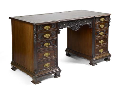 A late Victorian mahogany kneehole desk