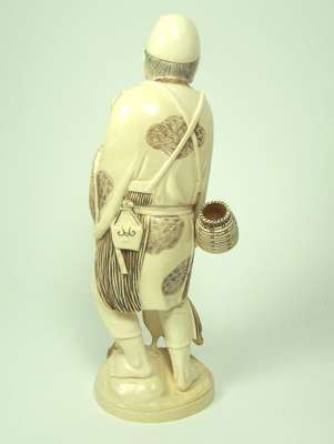 A large Japanese ivory figure of a man with two cranes, Meiji or Taisho period