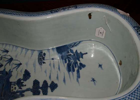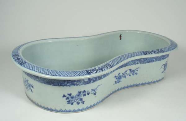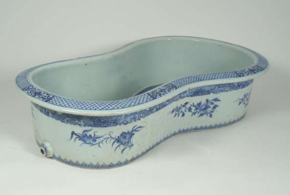 A large 18th century Chinese export blue painted bidet