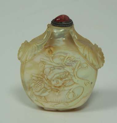 A Chinese mother of pearl snuff bottle, 1820-1880