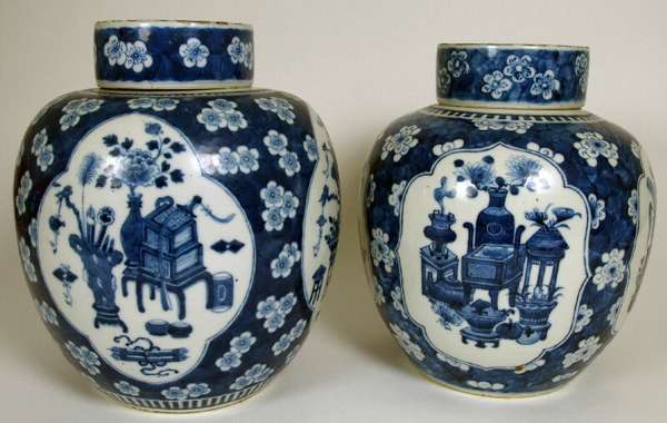 Two similar Chinese blue painted porcelain pounce pots Kangxi period