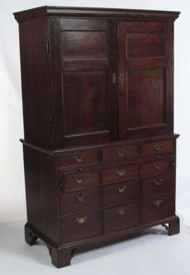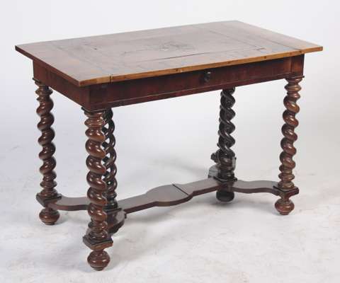 A late 17th/ early 18th century Iberian walnut cabinet, on later estate-built stand