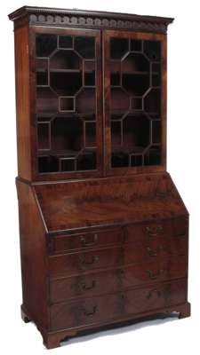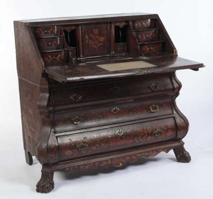 A late 18th/ early 19th century Dutch walnut and floral marquetry mahogany bureau