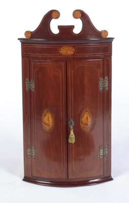 A burr walnut and crossbanded secretaire cabinet In the early 18th century manner