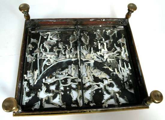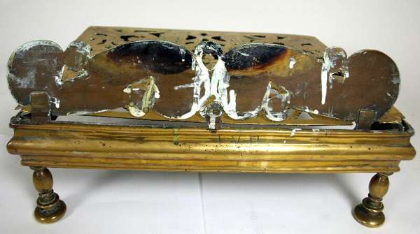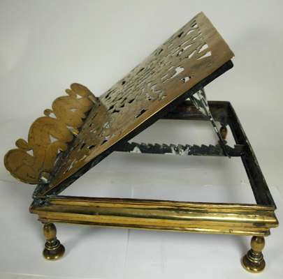 of rectangular form with pierced and engraved foliate adjustable book support plates, on turned legs