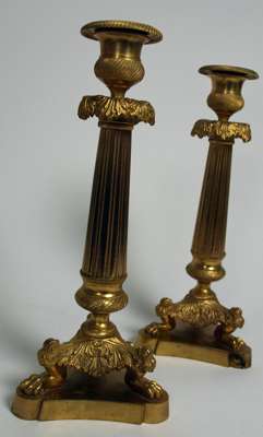A pair of 19th century French gilt metal candlesticks In the Empire manner
