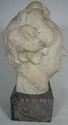 Note: White marble head (dated 1928) of Johan Wolfgang von Goethe (1749-1832) by Carl Seffner (1861-1932).
