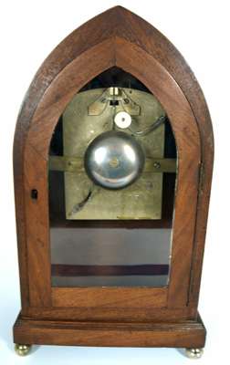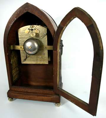 A Regency mahogany and brass Gothic style mantel clock By J.Clark, Edinburgh