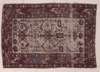 late 19th/early 20th century, the ivory field with three brown sunburst medallions issuing red wing motifs, within red hooked geometric border between brown bands
