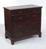 the top with cleated and moulded edge above two short and three long graduated drawers divided by ovolo beads, with baroque engraved escutcheons and later drop handles, with panelled sides on later bracket feet (probably formerly on a stand)