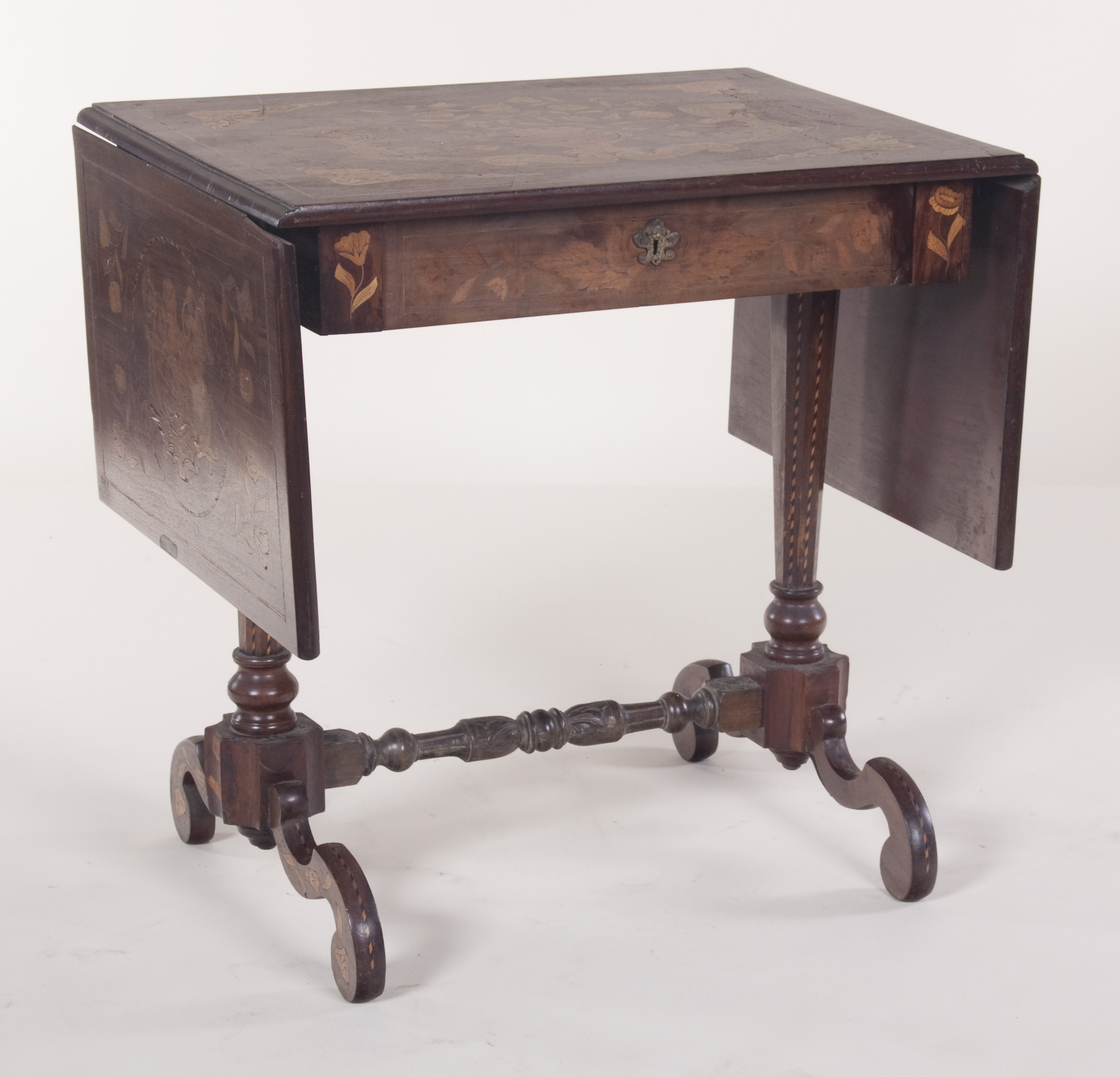 A 19th century Dutch walnut, chequer strung and floral marquetry sofa table
