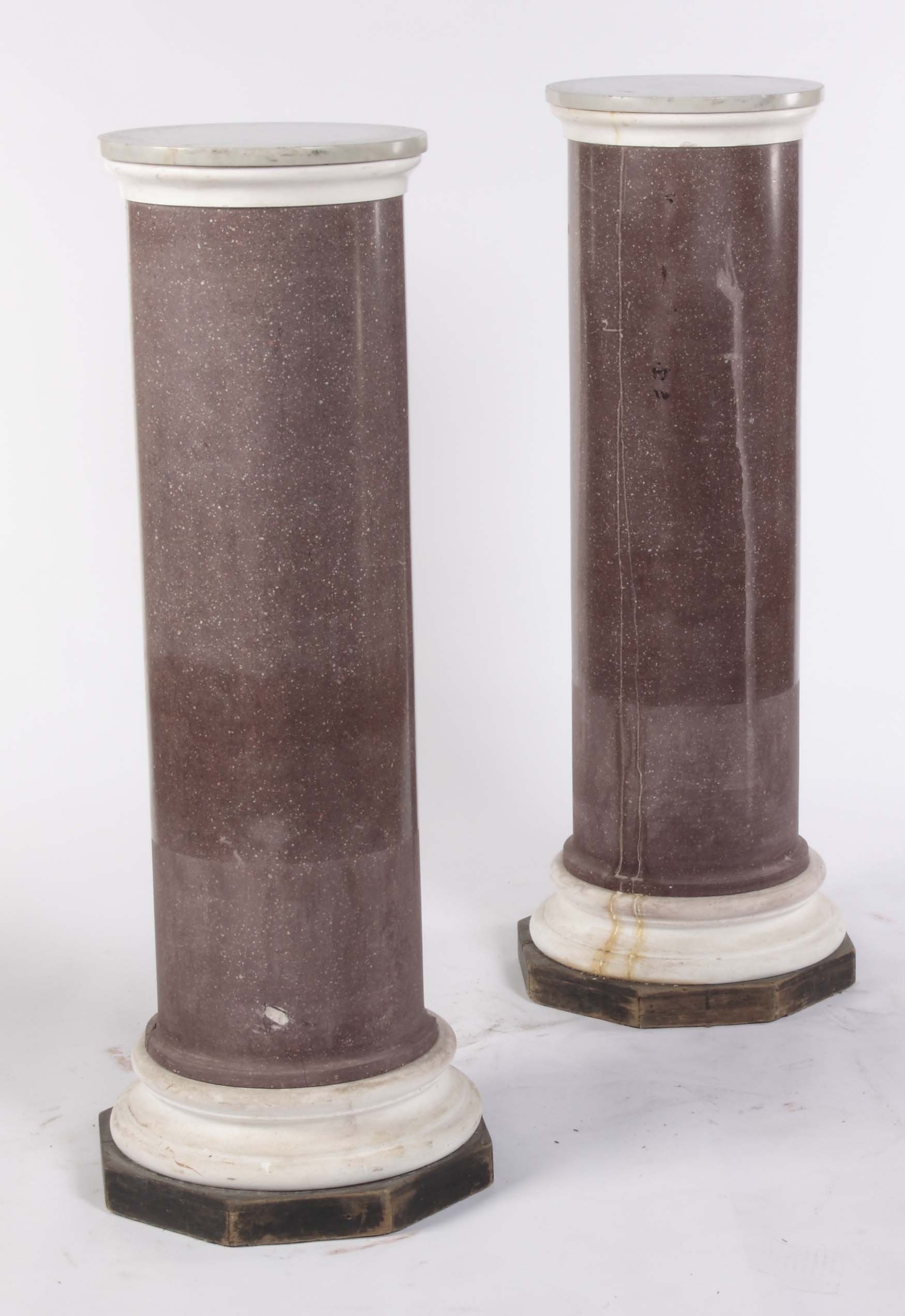 A pair of 19th century white marble and faux violet porphyry sculpture pedestals