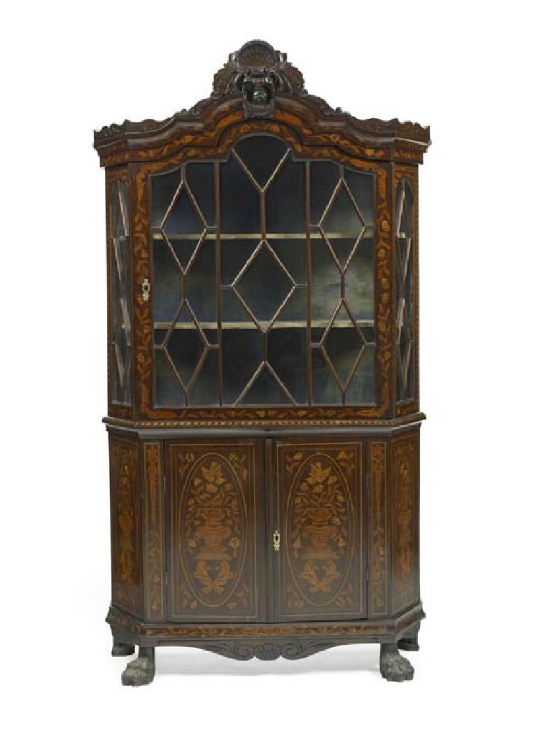 A 19th century Dutch walnut and floral marquetry display cabinet
