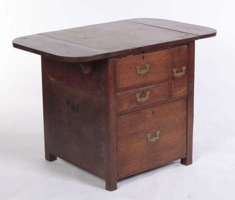 A 19th century teak Campaign metamorphic chest/drop flap table