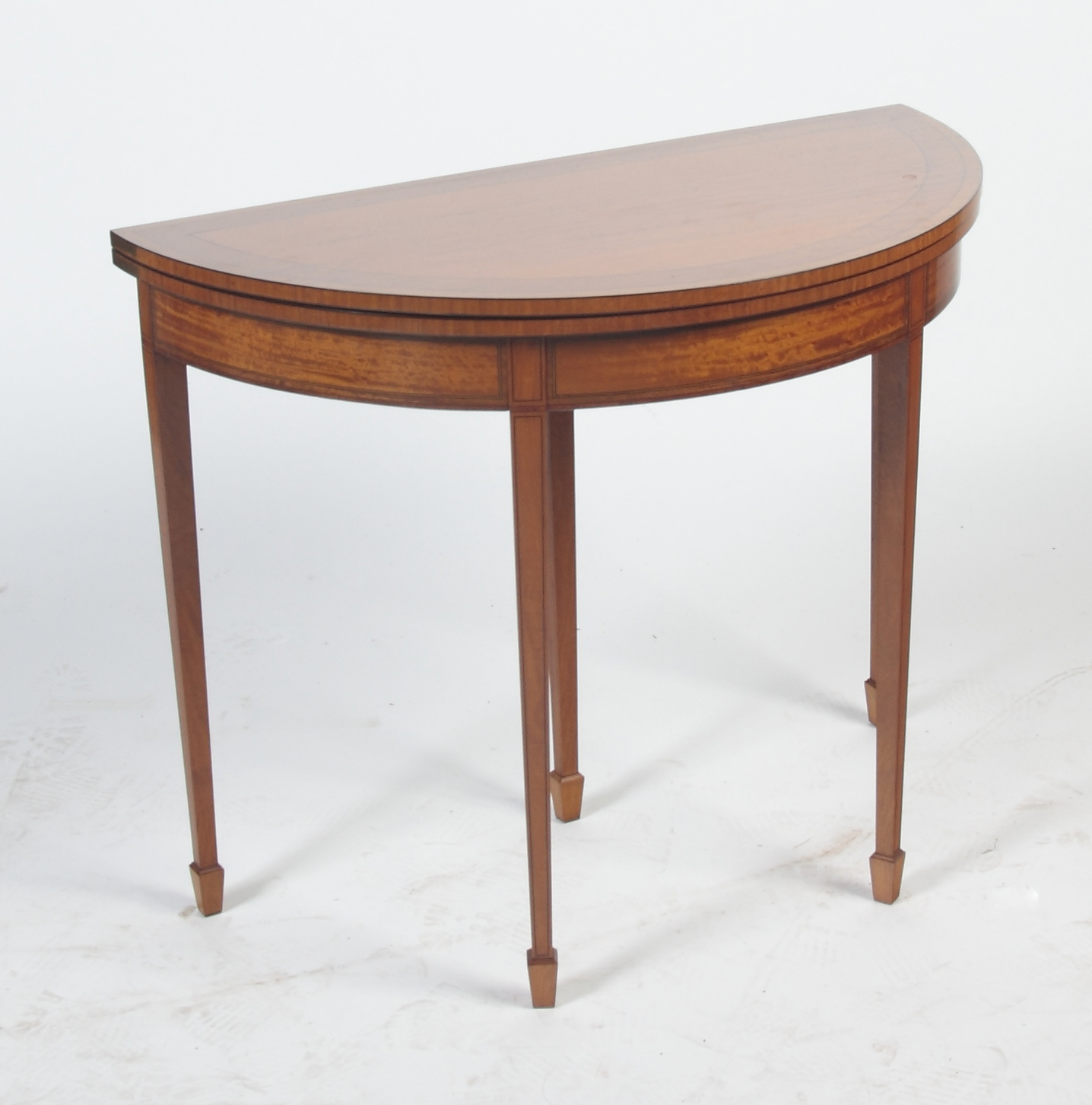 the top with baize lined interior and rear draw leg support, on square tapering legs ending in spade feet